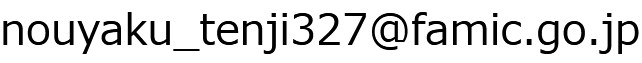 【お問い合わせ先】FAMIC農薬検査部業務調査課 電話:050-3797-1865 FAX:042-383-6955 E-mail: |